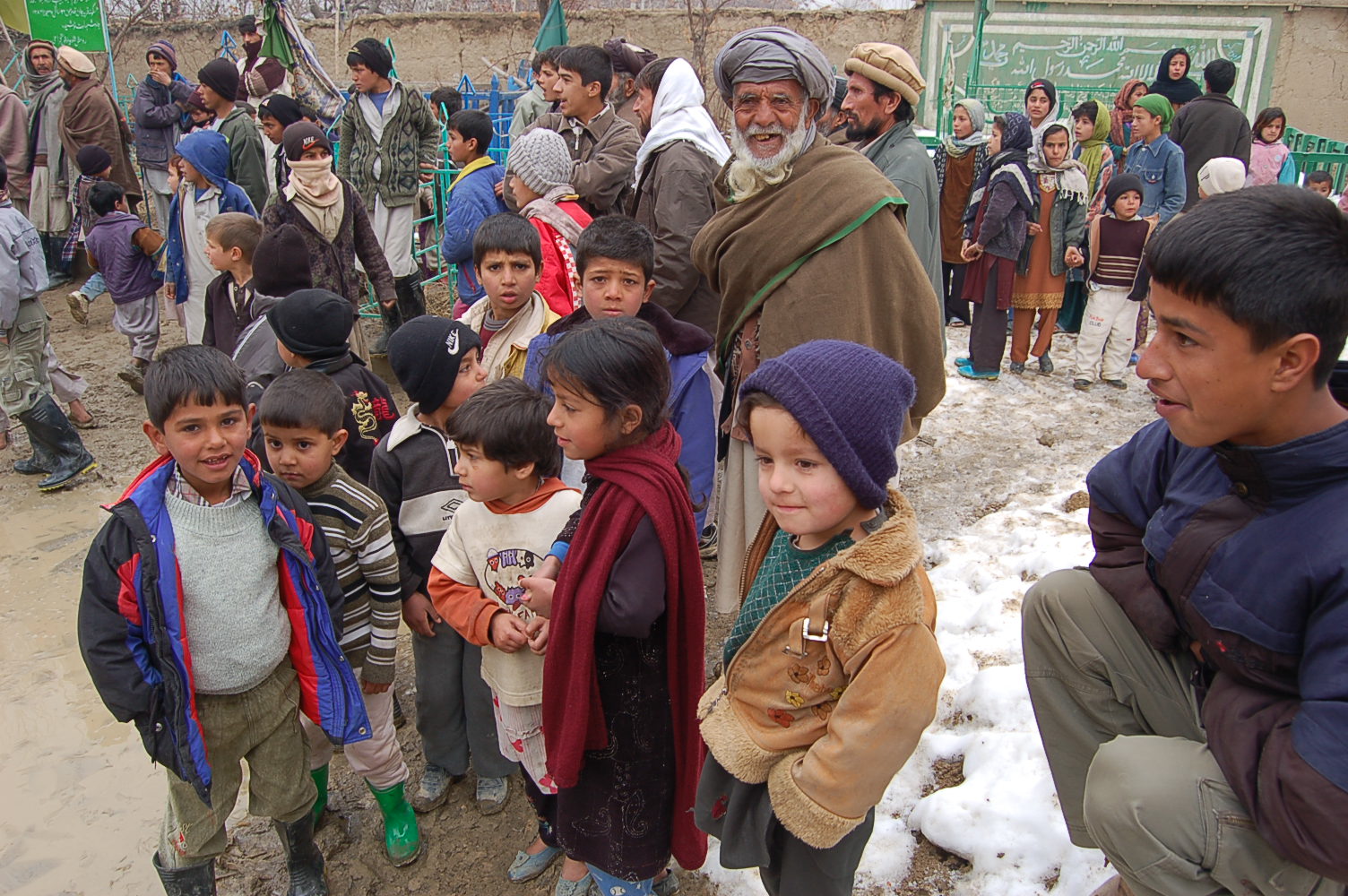 It was an international activity as we convoyed about thirty minutes “outside the wire” to a nearby village in Afghanistan in December 2006. Our team was made up of Soldiers from my unit, the 25th Signal Battalion, as well as Soldiers from Base Operations (BASOPS) on Bagram Airbase. We were accompanied by 2 Polish gunners and met up with Soldiers from the Afghan National Army (ANA). We all converged on the small village of Jangadam to distribute clothes, shoes, gloves, scarves, hats and toys received from caring people in the United States.