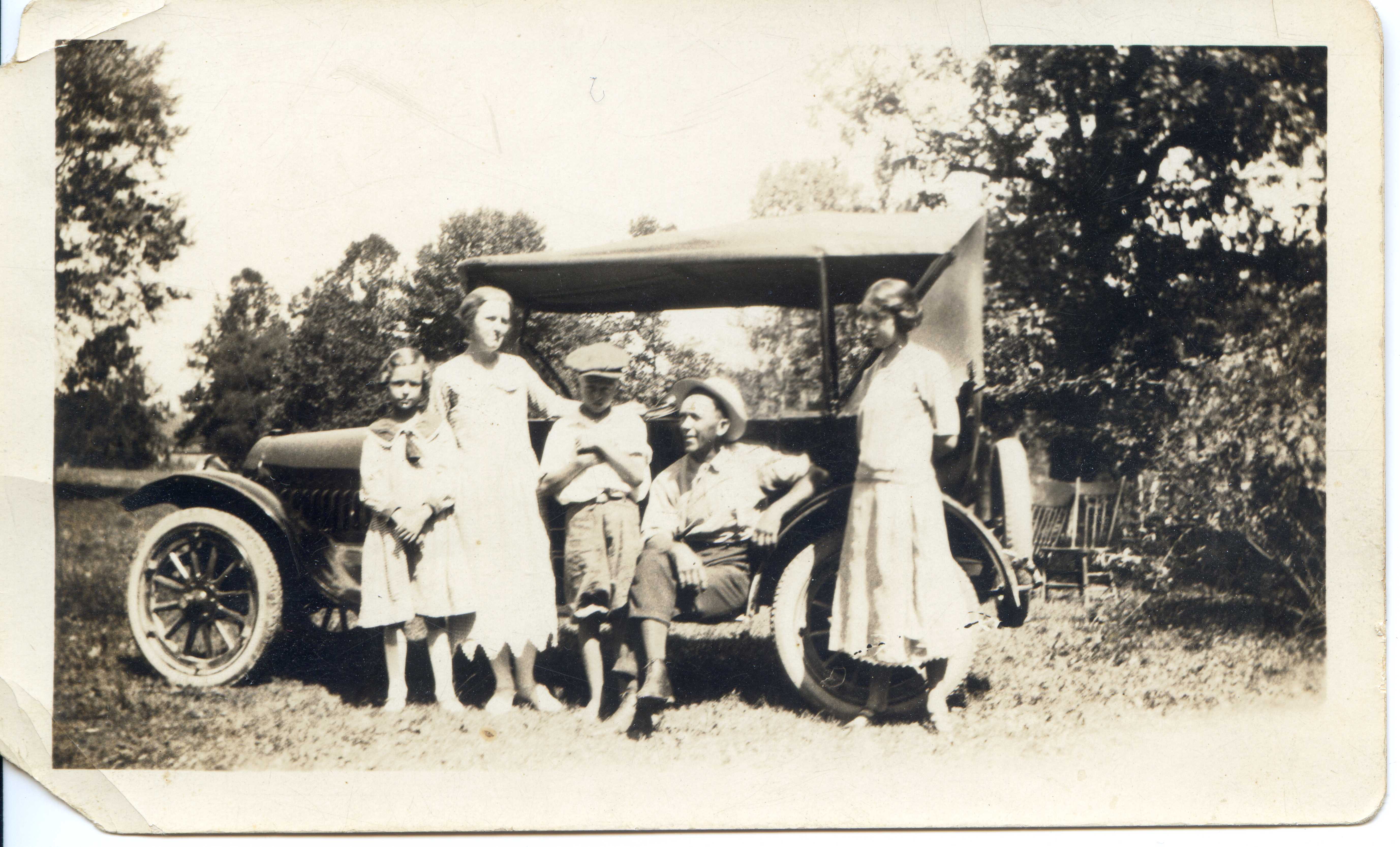 #8 I really believe that the gentleman standing in front of car is Charles Britton, Everitt’s nephew. The girl standing is Berniece Ihrig, definitely. the other girls are probably Charles Britton’s sisters. They are the children of Ollie Newkirk Britton and Howard Britton.