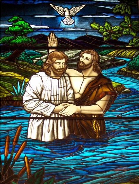 Photo Credit: from http://www.fbc-hamburg.com/baptism_of_jesus.html . Lighted stained glass window that sits above and behind the baptistry at First Baptist Church in Hamburg, Arkansas.