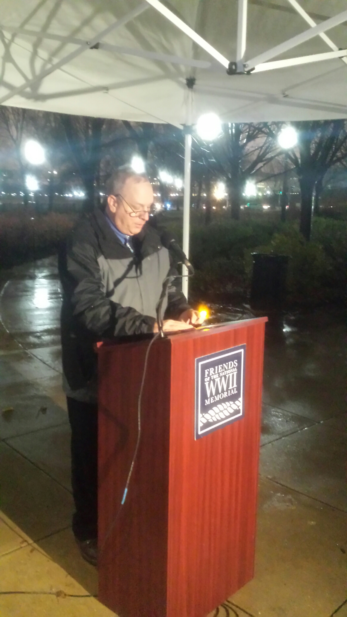 While the weather moved the vigil from the center of the WWII Memorial to beside the nearby Ranger Information building, the significance of the event remained the same as every name of the victims was read, of which I read 90. I think the weather also limited the attendance but it remained a tremendous honor to be able to participate and honor the Service Members and civilians who died on that infamous day.